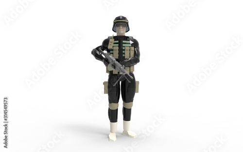 Fototapeta premium 3d rendering of a soldier wearing equipement and uniform in studio.