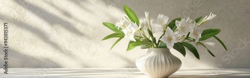 © ArtificialHorizons, Obraz premium 3D rendering of a vase adorned with tuberose and leaves