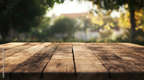 Fototapeta premium 3D rendering of a wooden tabletop with a blurred background ideal for product...
