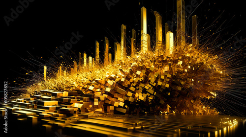 © ZaStock, Obraz premium 3D rendering of abstract technology digital hi tech concept background. 3D illustration. Abstract background with golden particles. Ai generated
