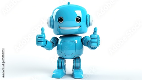 © vxnaghiyev, Naklejka premium 3D rendering of adorable blue robot with thumbs up on white background