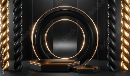 Obraz premium 3D rendering of blank product background for cream cosmetics Modern black podium background