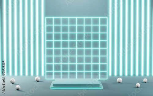 © Thares2020, Naklejka premium 3D rendering of blank product background for cream cosmetics Modern blue pastel podium background