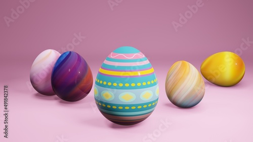 Obraz premium 3D rendering of Easter egg on pink background.