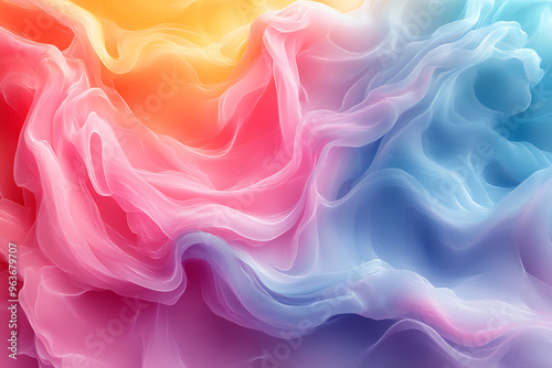 © Abstract, Obraz premium 3D rendering of exquisite liquid multi-colored paints swirling in water, creating a vibrant, dynamic background with fluid, artistic motion.