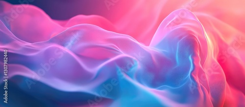 Fototapeta premium 3D rendering of flowing silk, glowing in pink and blue hues, with abstract...