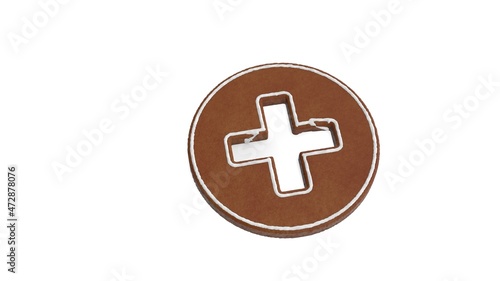 © Destrosvet, Obraz premium 3d rendering of gingerbread symbol of plus circle isolated on white background