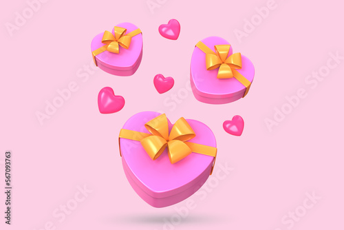 © Pinevilla, Fototapeta premium 3d rendering of heart giftboxs icon
