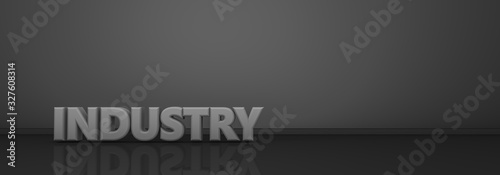© Berk, Obraz premium 3d rendering of "INDUSTRY" word on gray background and reflective black floor.
