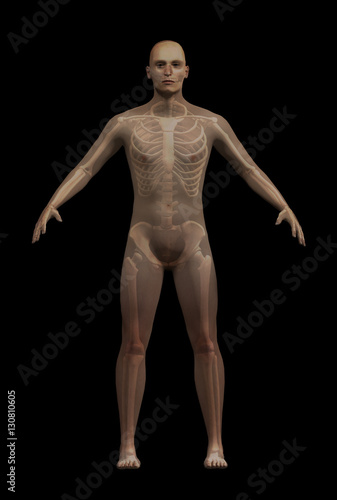 Fototapeta premium 3D rendering of man with superimposed skeleton. The man is a generic figure, any resemblance to real people is purely coincidental.