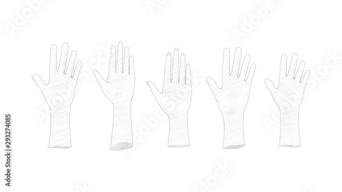 © Sepia100, Obraz premium 3d rendering of multiple hands isolated in white studio background