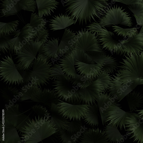Fototapeta premium 3D Rendering of palm leaves from top view in dark mood