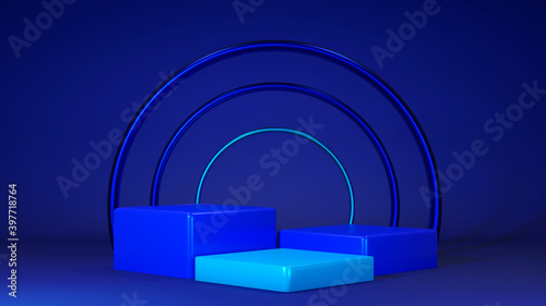 Fototapeta premium 3D Rendering of Premium blue podium mock on blue background, platform for product presentation. Minimal.