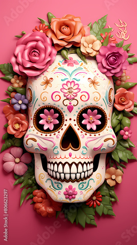 Naklejka premium 3D rendering of skull, Day of the Dead