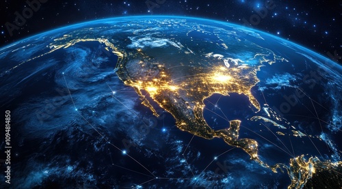 Obraz premium 3D rendering of the Earth glowing blue with lights