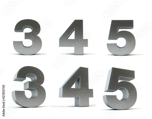 Obraz premium 3d rendering of the numbers 3 4 5 in brushed metal on a white isolated...