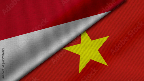 Fototapeta premium 3D Rendering of two flags from Republic of Indonesia and Socialist Republic of Vietnam together with fabric texture, bilateral relations, peace and conflict between countries, great for background