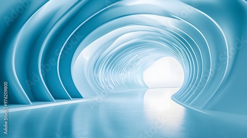 © plaksa, Naklejka premium 3d rendering of white and blue abstract geometric background. Scene for advertising, technology, showcase, banner, game, sport, cosmetic, business, metaverse. Sci-Fi Illustration. Product display