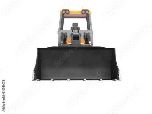 © Marianna, Fototapeta premium 3D rendering orange caterpillar bulldozer front view on white background no shadow