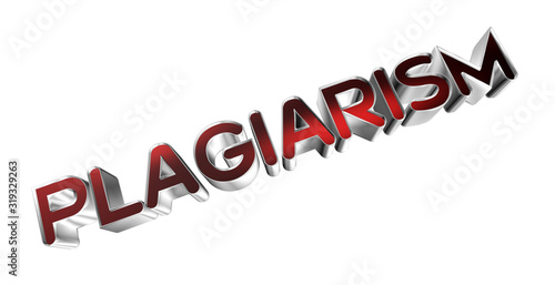 © kseniyaomega, Fototapeta premium 3D rendering plagiarism word - wrongful appropriation concept letter design isolated on white background