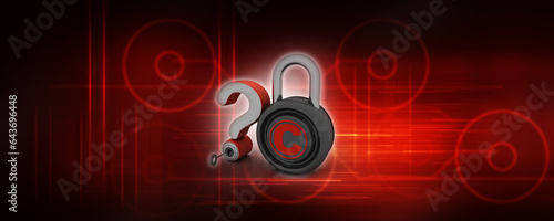 © deepagopi2011, Obraz premium 3d rendering question mark with copyright lock