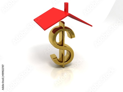 © jijomathai, Fototapeta premium 3d rendering Real estate concept. Dollar Sign with house