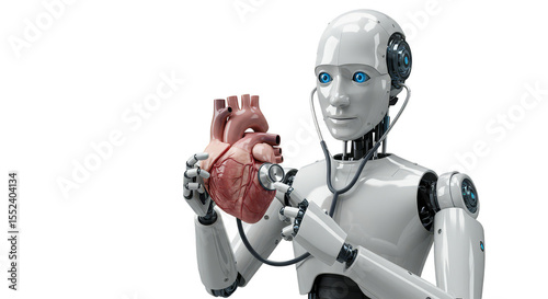 © Juan, Naklejka premium 3d Rendering Robot Holds Human Heart Artificial Organ Transparent Background