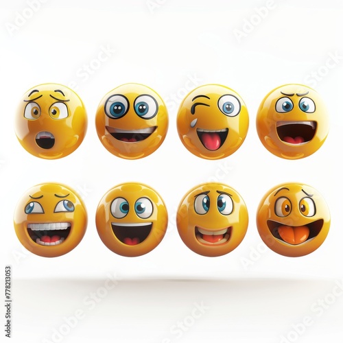 © MUS_GRAPHIC, Fototapeta premium 3D rendering set of emoji isolated on white