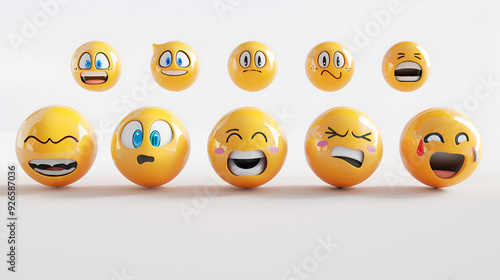 © Zahoor, Fototapeta premium 3D rendering set of emoji isolated on white
