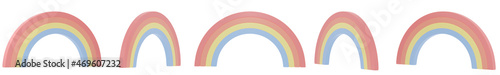 © Kwanchanok, Obraz premium 3D Rendering set of pastel rainbow in many views rotate in different angles isolated on white background. 3D Render. 3d illustration.