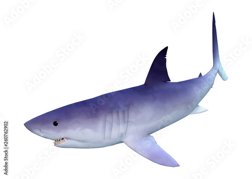 © photosvac, Naklejka premium 3D Rendering Shark on White