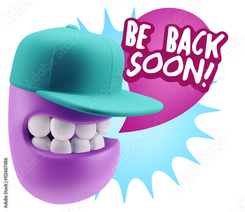 Fototapeta premium 3d Rendering Smile Character Emoticon Expression saying Be Back