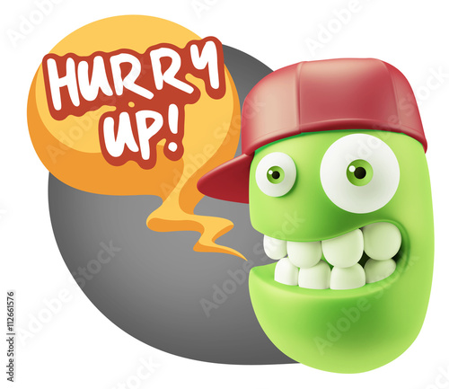 © xtock, Naklejka premium 3d Rendering Smile Character Emoticon Expression saying Hurry Up
