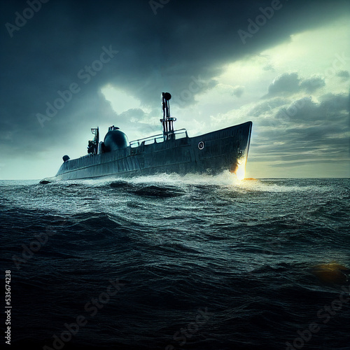 © Dav_782, Fototapeta premium 3D rendering. Submarine docked for repairs