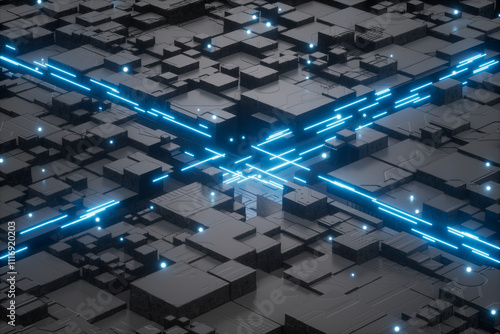 © 刘辉 刘, Obraz premium 3D rendering technology sense chip data transmission background