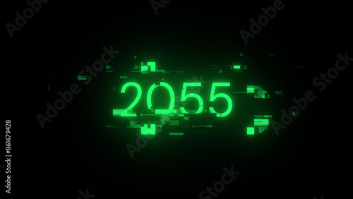 © Vitaly, Obraz premium 3D rendering 2055 text with screen effects of technological glitches