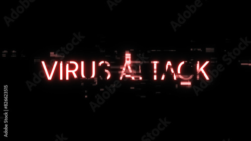 © Vitaly, Obraz premium 3D rendering virus attack text with screen effects of technological glitches