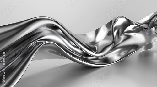 © suldev, Obraz premium 3d rendering wave chrome metallic band. Flowing abstract metal shape. Stock Illustration
