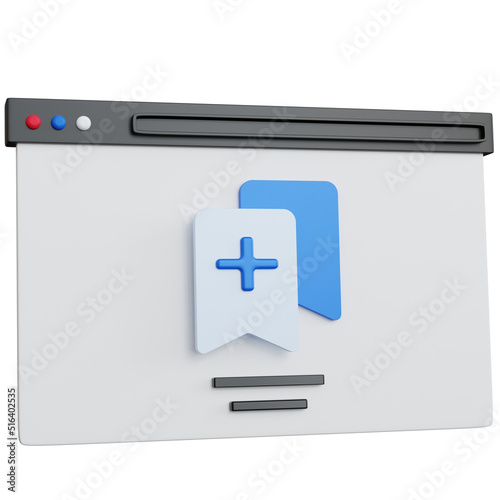 © Aisyah Faiha, Obraz premium 3d rendering web browser with icon add blue bookmark isolated