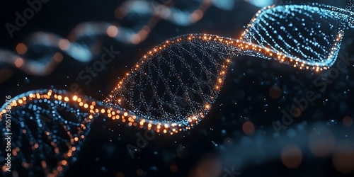 Obraz premium 3D representation of DNA strands with glowing effects.