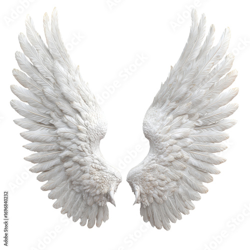 Obraz premium 3D representation of white angel wings, isolated on transparent background