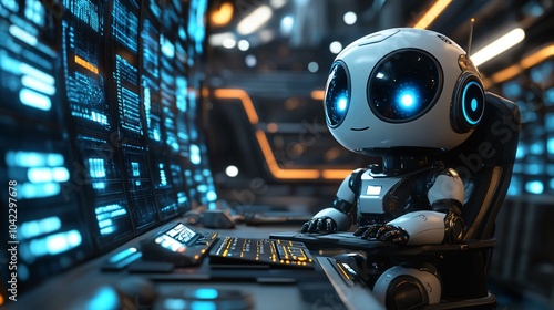 © Nadya, Fototapeta premium 3d robot with digital computer