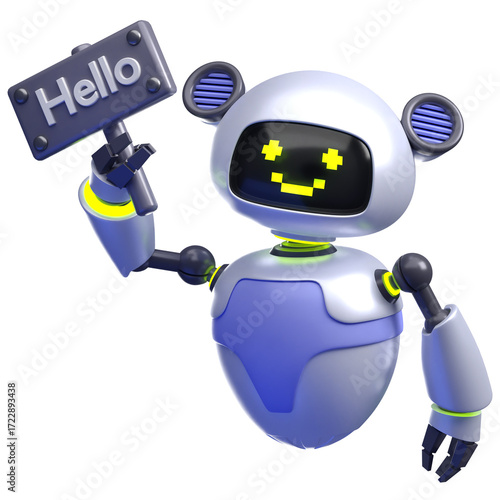 © Rakata, Fototapeta premium 3D Robot with Hello Board Illustration