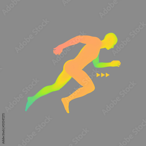 Naklejka premium 3d Running Man. Sport Symbol. Low-poly Man in Motion.