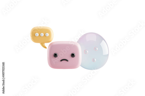 © NobleFrame, Naklejka premium 3D Sad emoji and broken bubble floating pastel icon