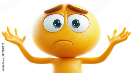 © A4719, Obraz premium 3D Sad Emoji Character with Upraised Hands Asking Question Depressed Upset Worried