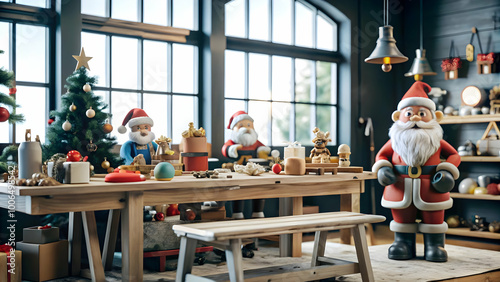 Naklejka premium 3D Santa's Organic Toy Workshop: Vibrant Cartoon Concept with Seamless Background, Perfect for Text Overlays and Iconic Illustrations on White