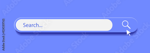 © Chikichirony, Obraz premium 3d search bar Internet browser engine on blue background for UI design, website interface element with web icons and push button vector
