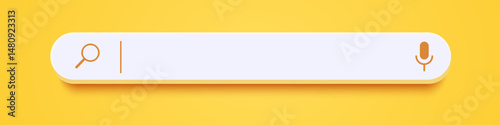© Chikichirony, Obraz premium 3d search bar Internet browser engine on yellow background for UI design, website interface element with web icons and push button vector