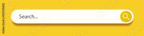 © Chikichirony, Obraz premium 3d search bar Internet browser engine on yellow background for UI design, website interface element with web icons and push button vector